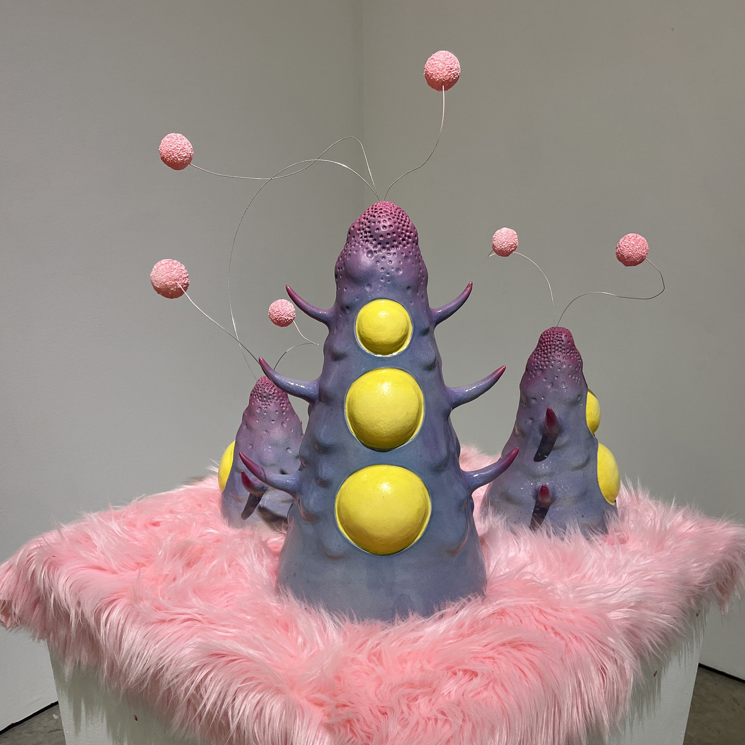 ceramic, faux fur, metal, foam